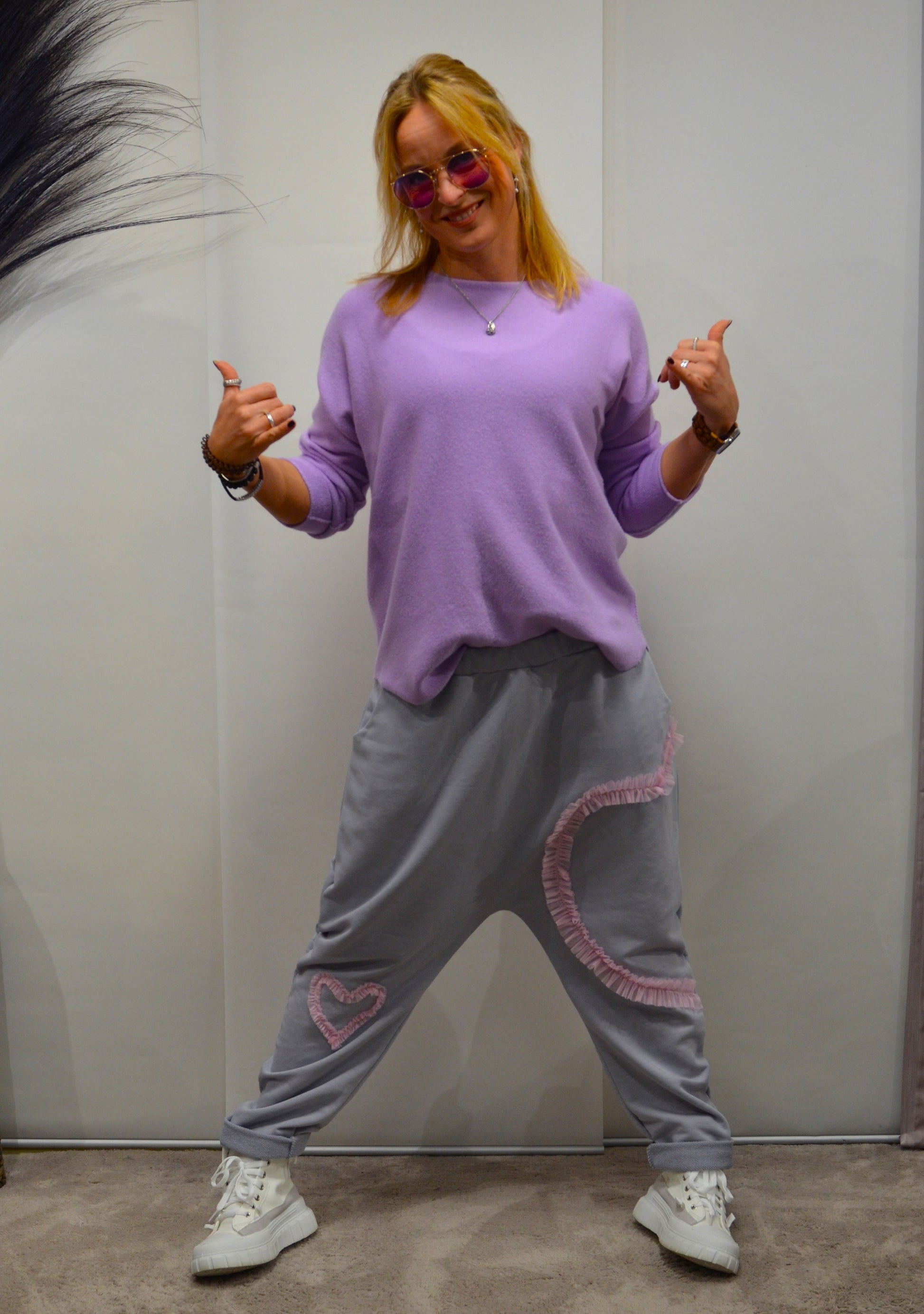 Erleben Sie höchsten Tragekomfort und einzigartigen Stil mit unserer Baggy Hose. Mit 2 Eingriffstaschen und einem elastischen Bund bietet sie optimale Bewegungsfreiheit. Die verspielten rosafarbenen Tüll-Applikationen verleihen dem Look eine feminine Note. Vielseitig kombinierbar, ein Must-Have in jeder Alltagsgarderobe.