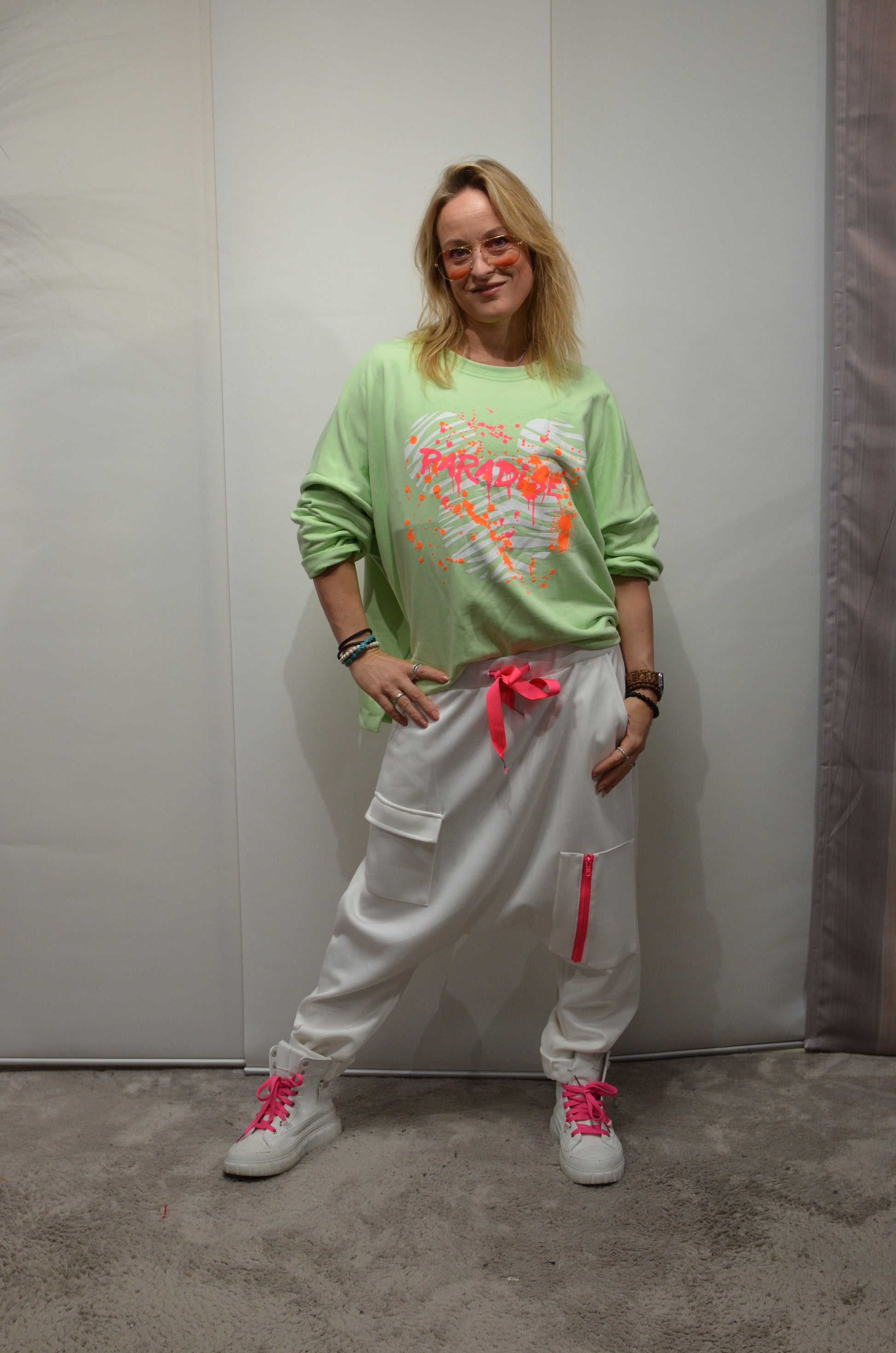 Entdecken Sie unsere lässige Baggy Hose neo! Mit ihrem lockeren Schnitt ist sie perfekt für einen trendigen und bequemen Look. Erleben Sie den ultimativen Style in Größe 38-44 Bundweite ca. 34-54cm