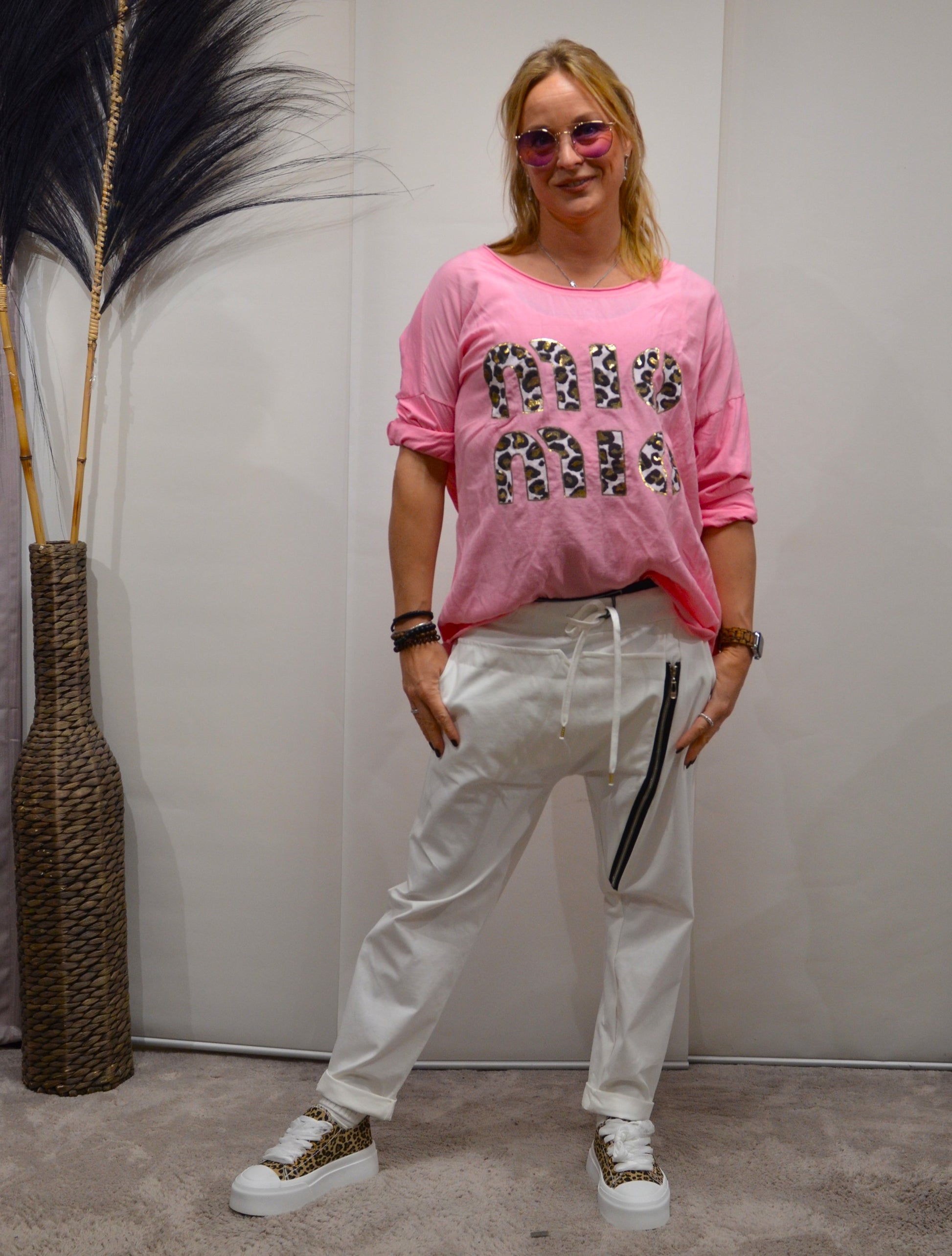 Mit der trendigen und stylischen Violetta Hose bist du immer modisch unterwegs. Durch das leichte Material ist sie angenehm zu tragen und bietet den ganzen Tag über Komfort. Mit ihrem einzigartigen Design verleihst du deinem Outfit das gewisse Etwas. Ein Must-Have für jeden modebewussten Kleiderschrank.
