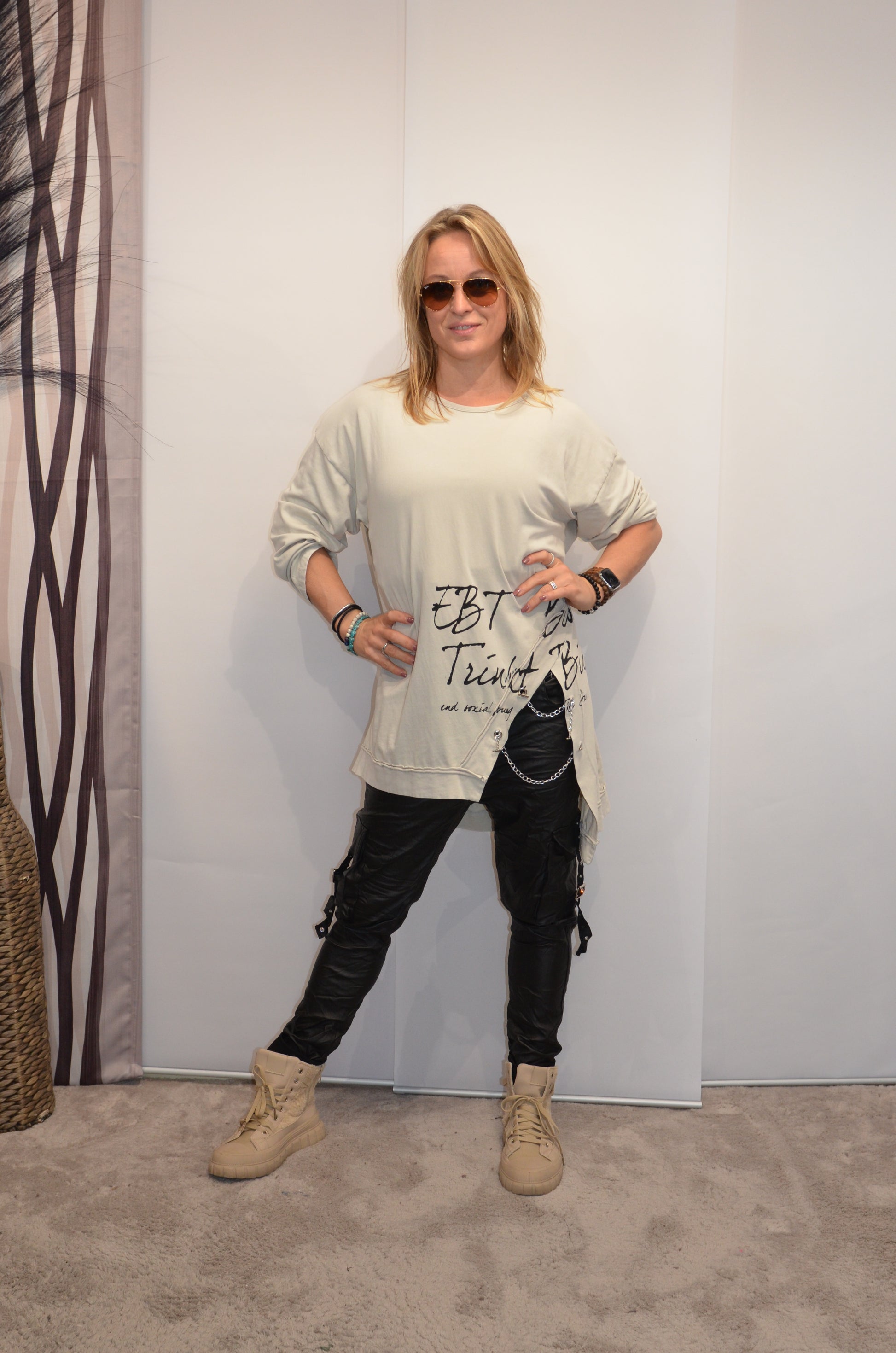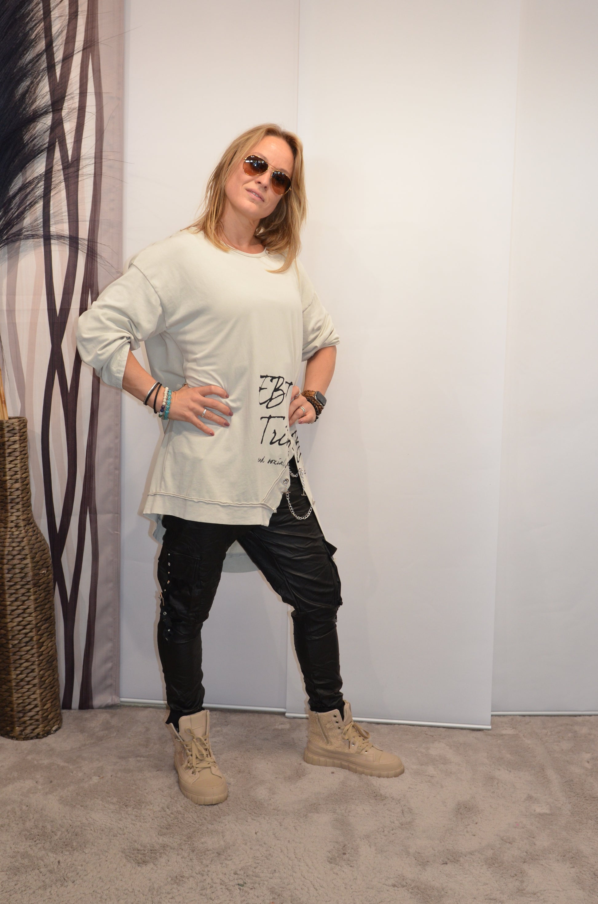Diese Tunika "Cindy" ist perfekt für einen bequemen und lässigen Look. Die lange Passform und das angenehm weiche Material sorgen für ein komfortables Tragegefühl. Ideal für den Alltag oder entspannte Abende.